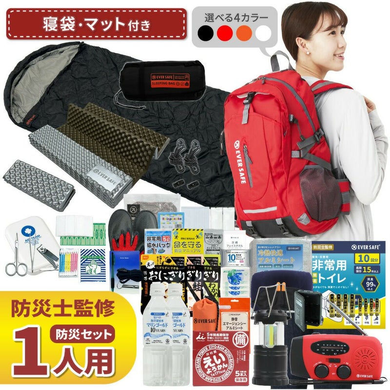 防災グッズ 防災セット 1人用 寝袋・マット付き EVERSAFEリュック 防災士監修 救急セット 避難 地震 災害 防災食 防災寝具 防災ラジオ 長期保存水 携帯トイレ 懐中電灯 衛生用品 警戒レベル4 L4ESNBMT01