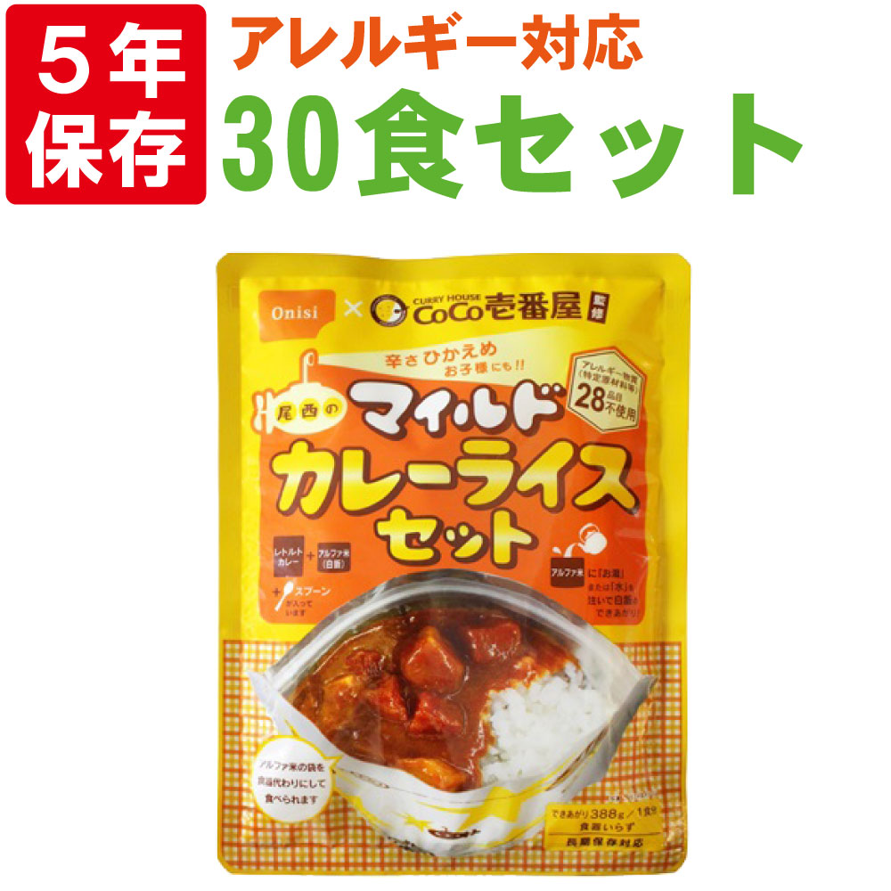 非常食セット CoCo壱番屋監修 尾西のマイルドカレーライスセット 30食セット 5年保存食
