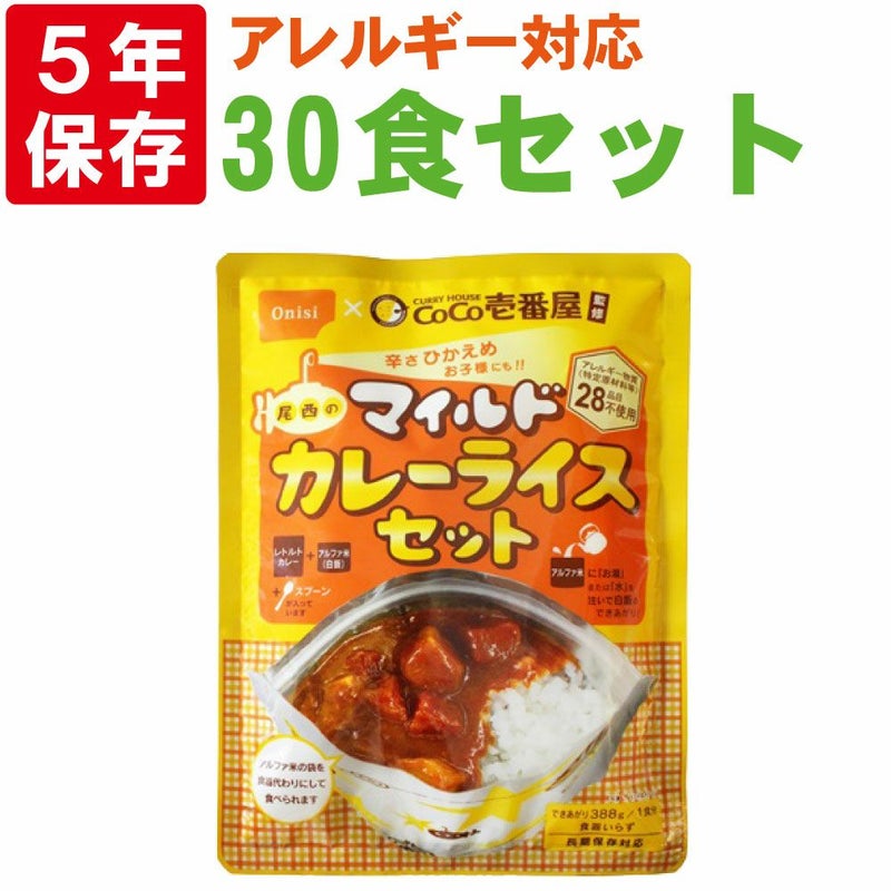 6. 非常食セット CoCo壱番屋監修 尾西のマイルドカレーライスセット 30食セット 5年保存食