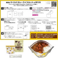 アルファ米にお湯または水を注ぎ出来上がったご飯に、カレーをかけてお召し上がりください。