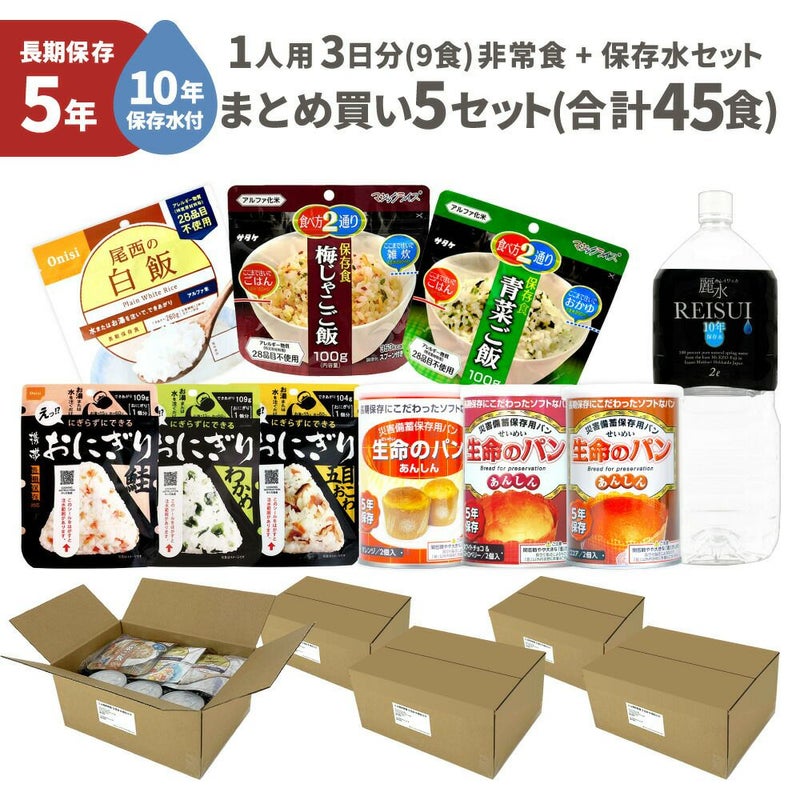 【関連ワード】 非常用持ち出し袋 防災備蓄品 1人用 3日間 5人分 2リットル 水 お湯で作る 水で作れる 尾西 サタケ 生命のパン カムイワッカ麗水 おむすび オフィス向け 企業向け 法人向け 団体向け 家族向け ケース販売