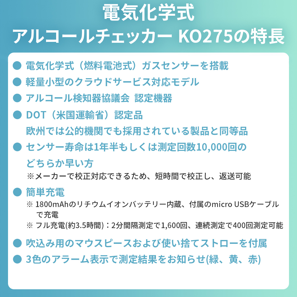 スマホアプリ連携で記録した測定データをPCで一元管理 アルコールチェッカー 検知器 電気化学式 アルコール検知器協議会認定 KO275