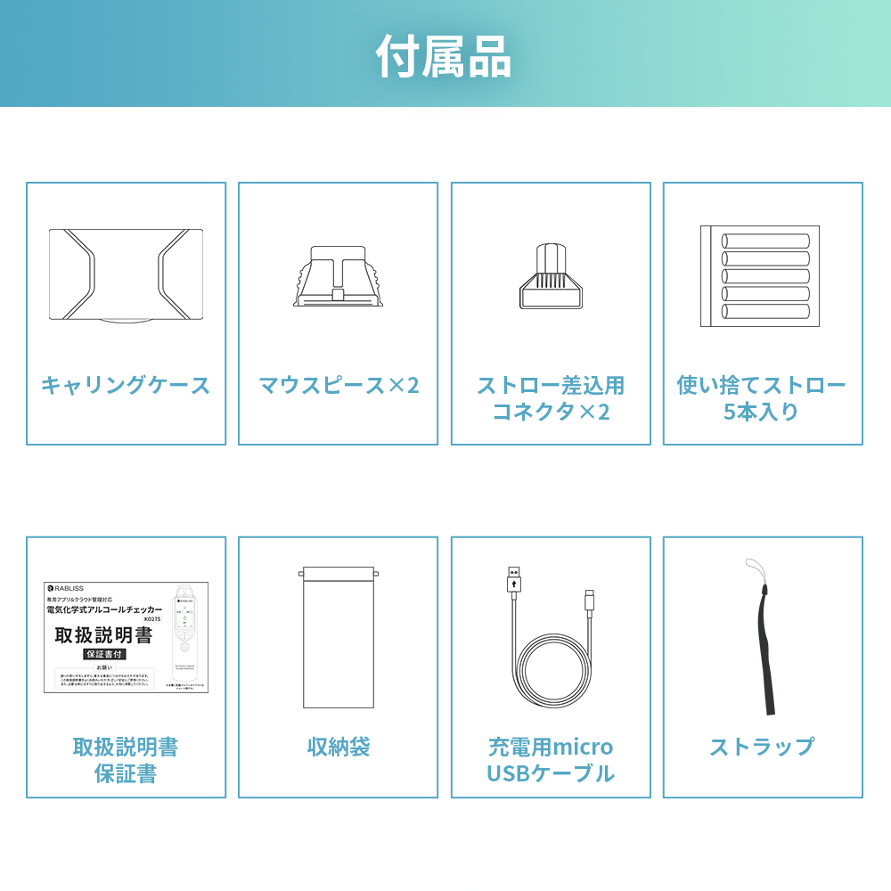 アルコール検知器協議会 認定機器 DOT(米国運輸省)認定品 クラウド アプリ連携 アルコールチェッカー アルコール検知器 アラーム表示 飲酒検査 高精度 簡単充電 長寿命 電気化学式センサー 飲酒運転防止 簡単測定 コンパクト 軽量 酒気帯び運転 飲酒チェッカー アルコールチェック セルフチェック 飲酒運転防止 携帯用 呼気検査 1年半 10,000回測定可能 小林薬品 RABLISS