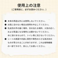 ・シートの表面や内部に黒色や黄色の小さな斑点状のものが見られることがありますが、これは植物繊維の一部ですので、安心してお使いください。