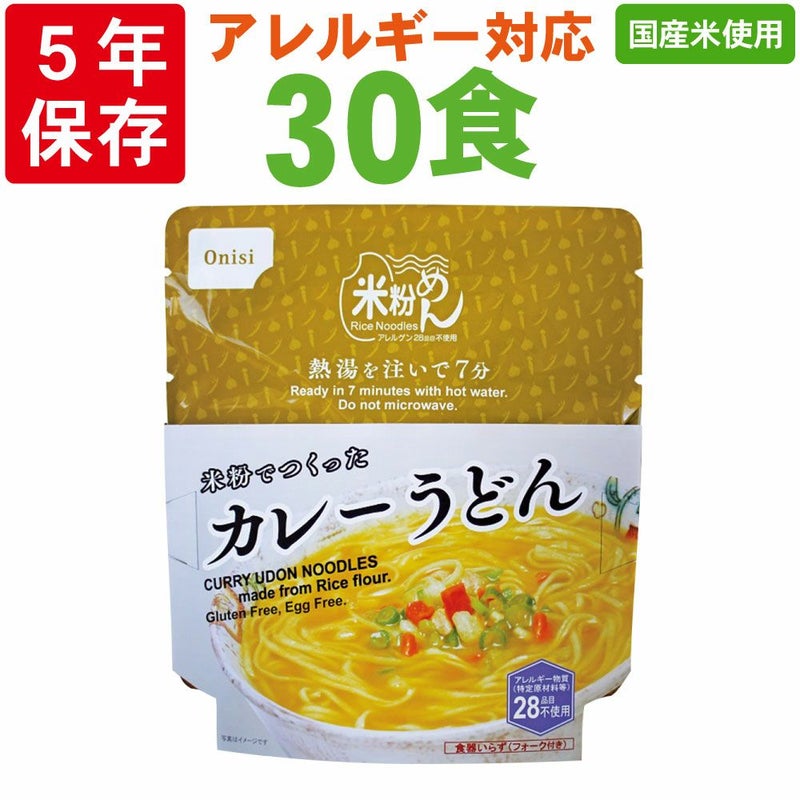 アレルギー対応食(アレルギー物質 特定原材料等28品目不使用)/ スパイスの効いた味わい 非常食 尾西食品 「米粉でつくったカレーうどん」 5年保存 30食セット