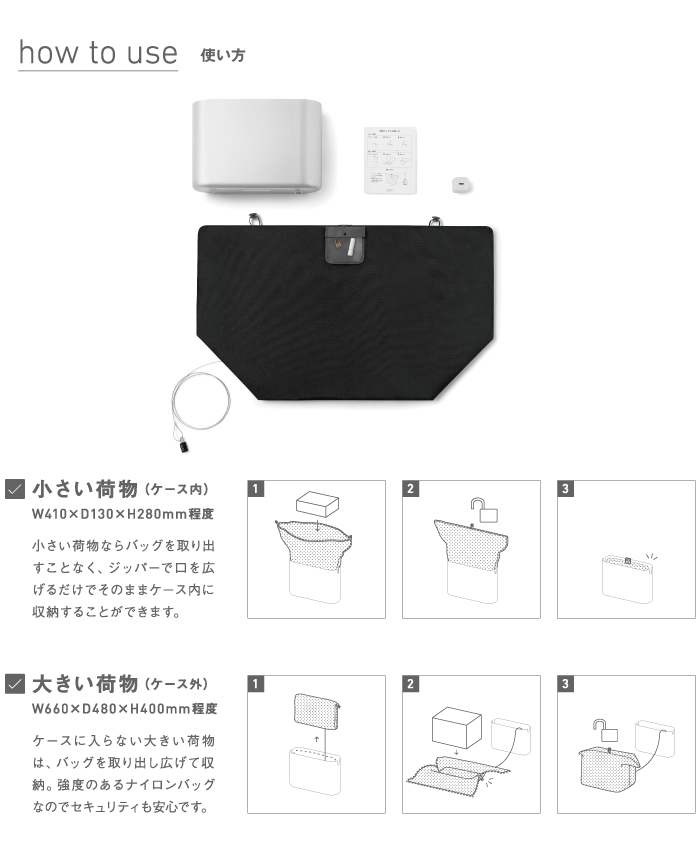 置いてく、受け取る。シンプルな宅配ボックス oitec 宅配ボックス 宅配BOX 4色 バッグインケース型 ワイヤー 錠前 鍵付き 固定 玄関前 置き配 メッセージボード