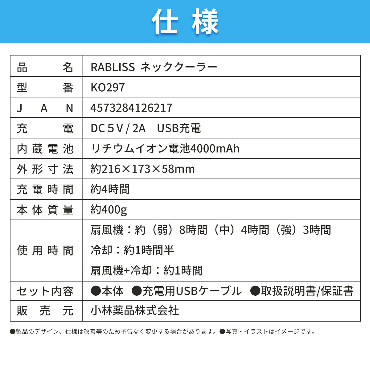 3. ネッククーラー 2台セット 小林薬品 RABLISS KO297 熱中症対策 ネッククーラー 冷却 急速 扇風機