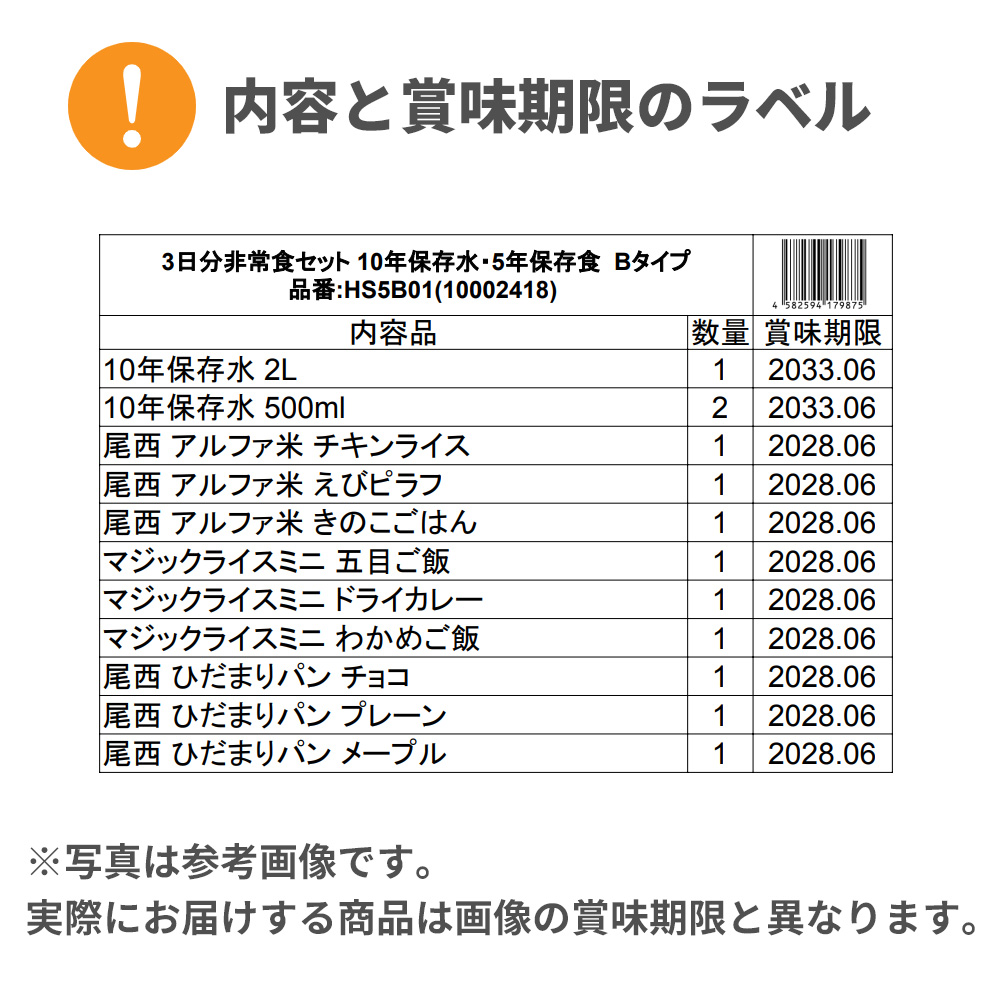 3. 非常食セット 3日間分 4セット(36食分) 10年保存水+5年保存食 詰め替え可能 Bセット HS5B04
