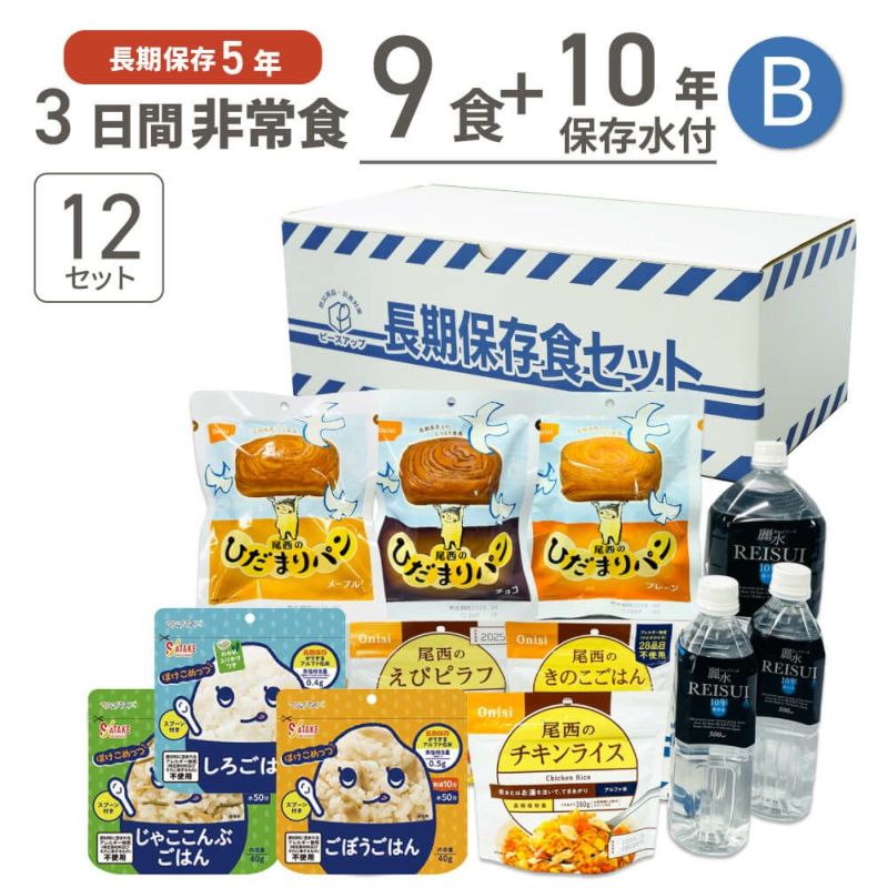 セット内容:「3日分 非常食セット 10年保存水+5年保存食詰め替え可能 Bセット」 12セット