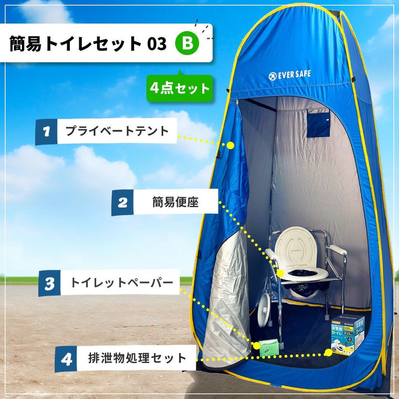 3. 簡易トイレセット03 Bセット(4点) プライベート テント 簡易 トイレットペーパー 排泄物処理 セット 非常用 ポータブル 凝固剤 トイレ トイレ急便 携帯 キャンプ