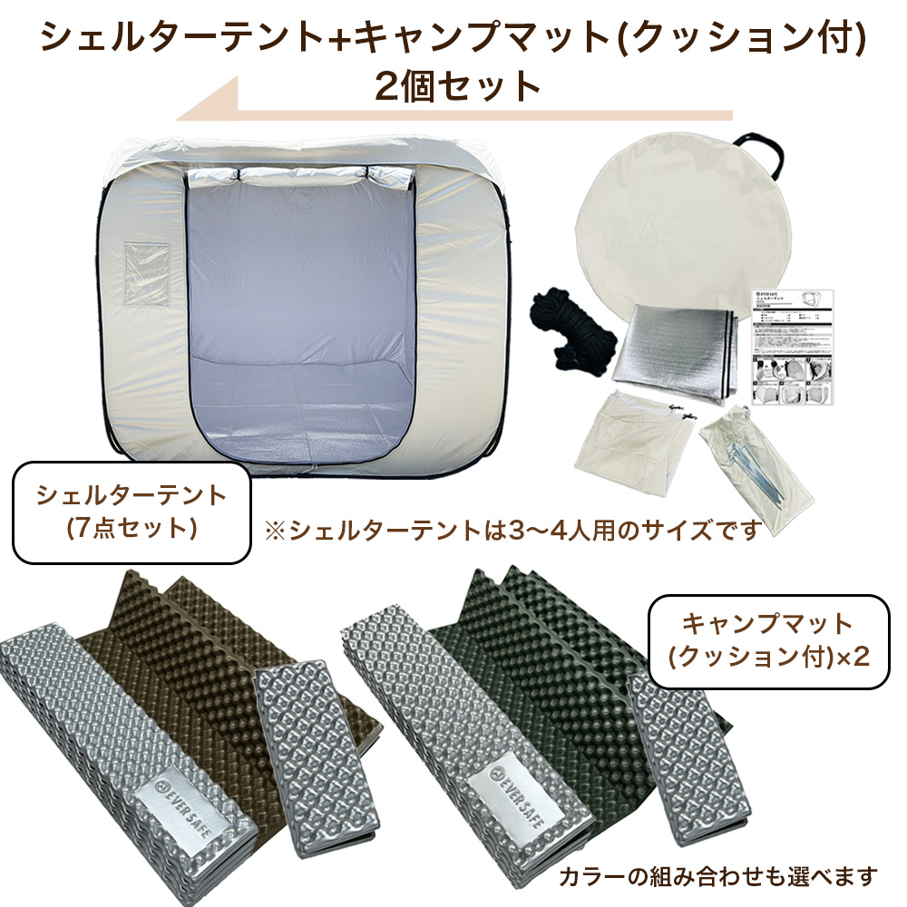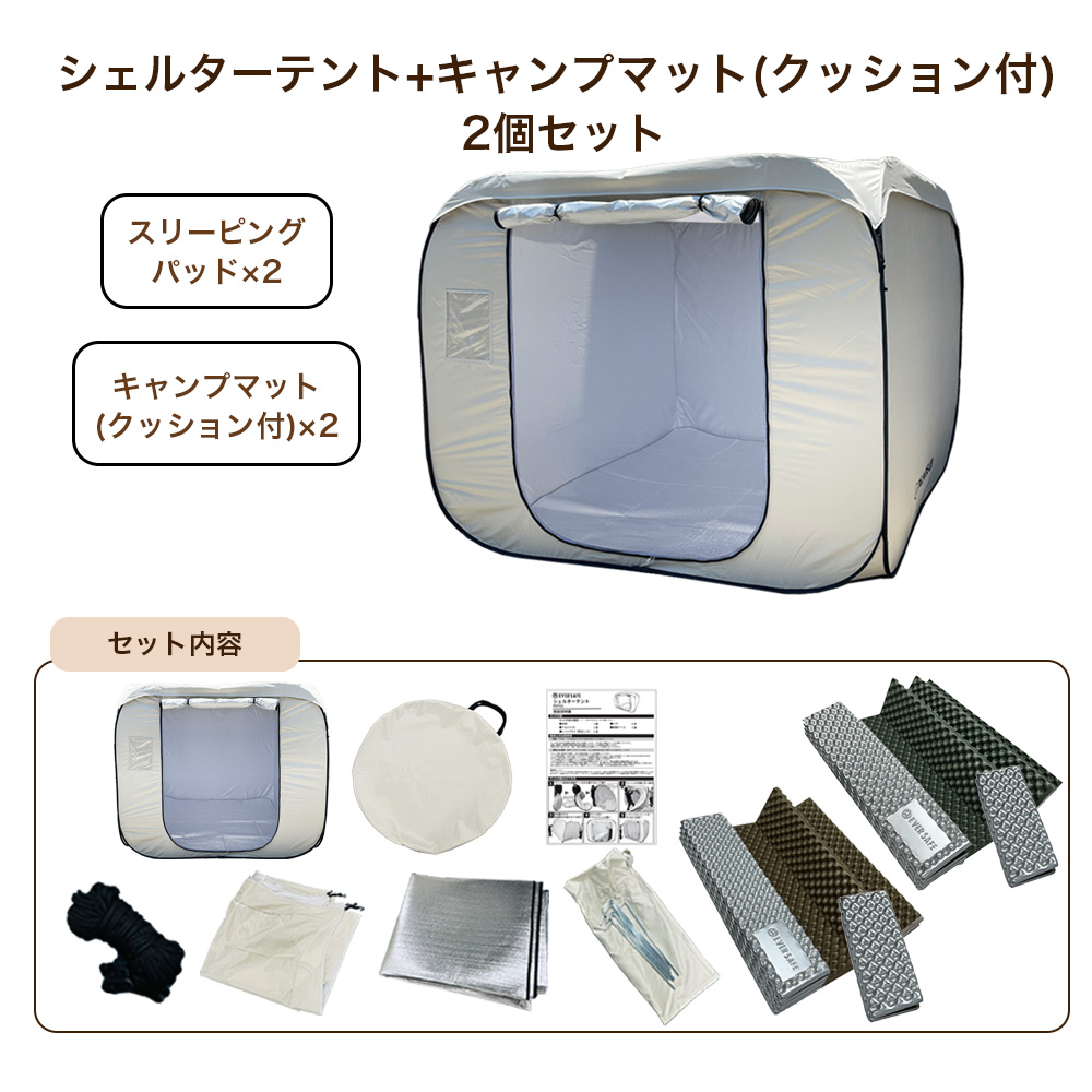 シェルターテント 2人分セット キャンプマット クッション付 2個 PST01 防災テント 3-4人用 災害時 アウトドア キャンプ