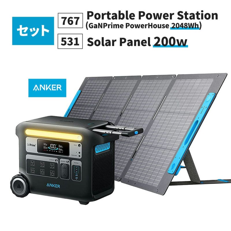 ポータブル電源767(2048wh) ソーラーパネル531(200W)セット Anker 防災 キャンプ