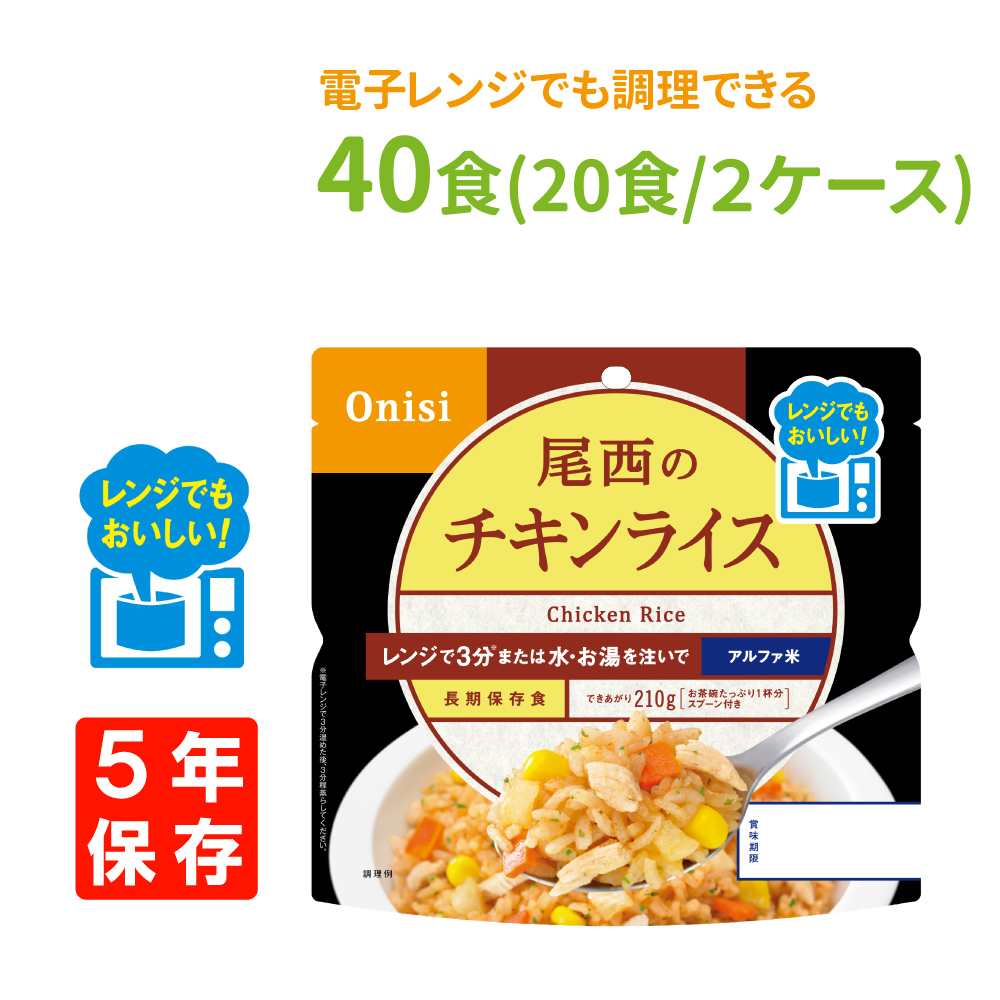 非常食 尾西食品 尾西のレンジ+(プラス)チキンライス 40食(20食/箱x2) 5年保存