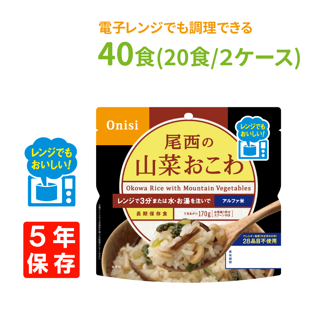 非常食 尾西食品 尾西のレンジ+(プラス)山菜おこわ 40食(20食/箱x2) 5年保存