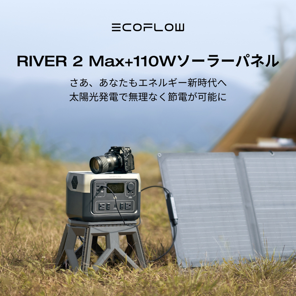 セット ポータブル電源 ソーラーパネル リン酸鉄 リチウムイオン リチウムイオン 電池 バッテリー 電源 蓄電池 発電機 省エネ 防災 用品 グッズ 災害 非常時 コンパクト 持ち運び アウトドア キャンプ 冬キャンプ 車中泊 ポタ電 長寿命 節電 バッテリー 停電 対策 アプリ対応 遠隔操作 おすすめ 小型 ポータブル 急速充電 避難時 軽量 スマホ連動 エコフロー リバー2 EcoFlow RIVER 2 Max 512Wh ZMR610-B-JP + 110W EFSOLAR110N 折りたたみ 折り畳み式 ソーラー キックスタンド パネル チャージャー 充電器 太陽光 発電 チャージ スリム 薄型 高変換 IP67 防水 防塵