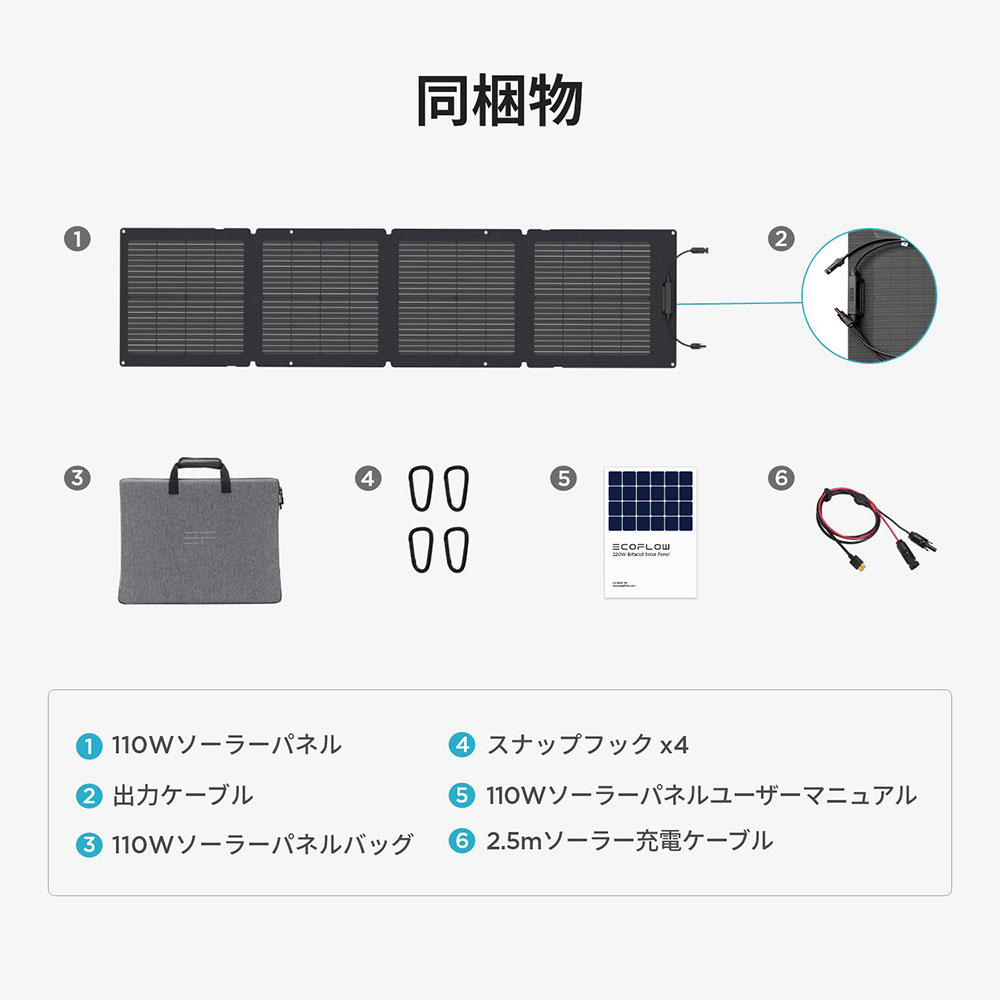 4. ポータブル電源 ソーラーパネル セット ZMR610-B-JP EFSOLAR110N EcoFlow