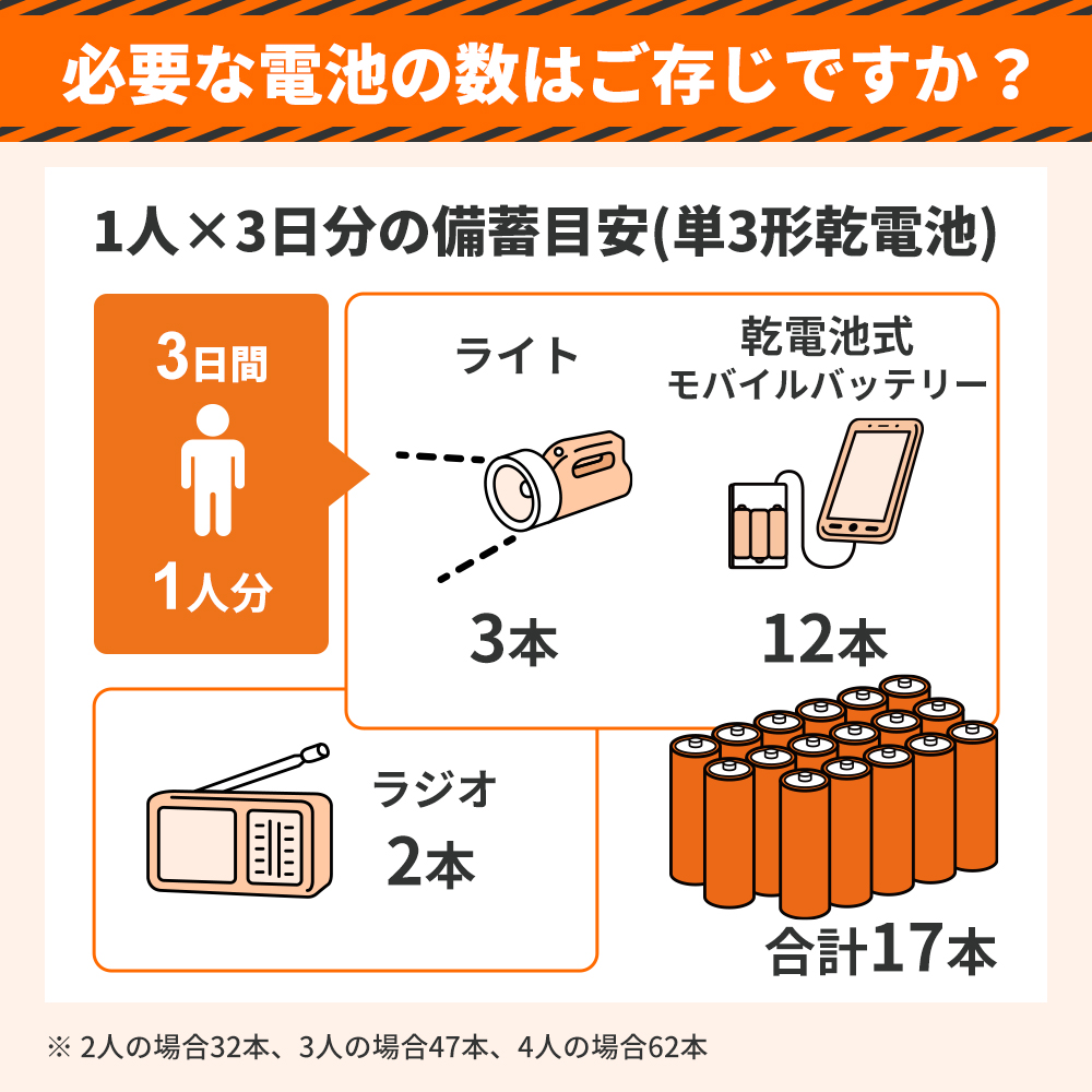 【関連ワード】 防災用品 防災備蓄品 単三電池 ローリングストック 電池 避難 懐中電灯 ラジオ スマートフォン充電 電圧1.5V