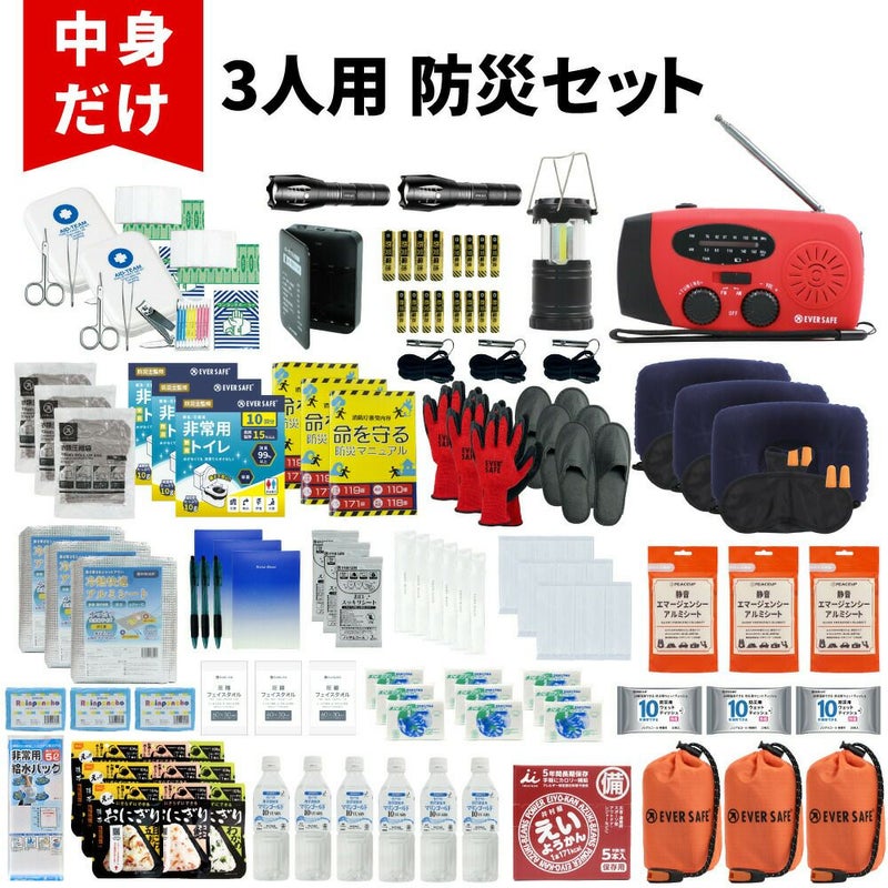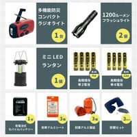 ケース×1 / ハサミ×1 / つめきり×1 / ピンセット×1 / ワンタッチ包帯×1 / 綿棒×10 / コットン×3 / 絆創膏×5