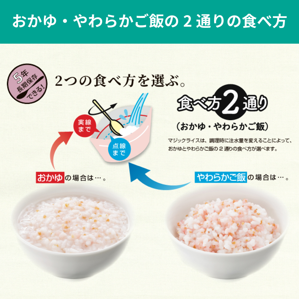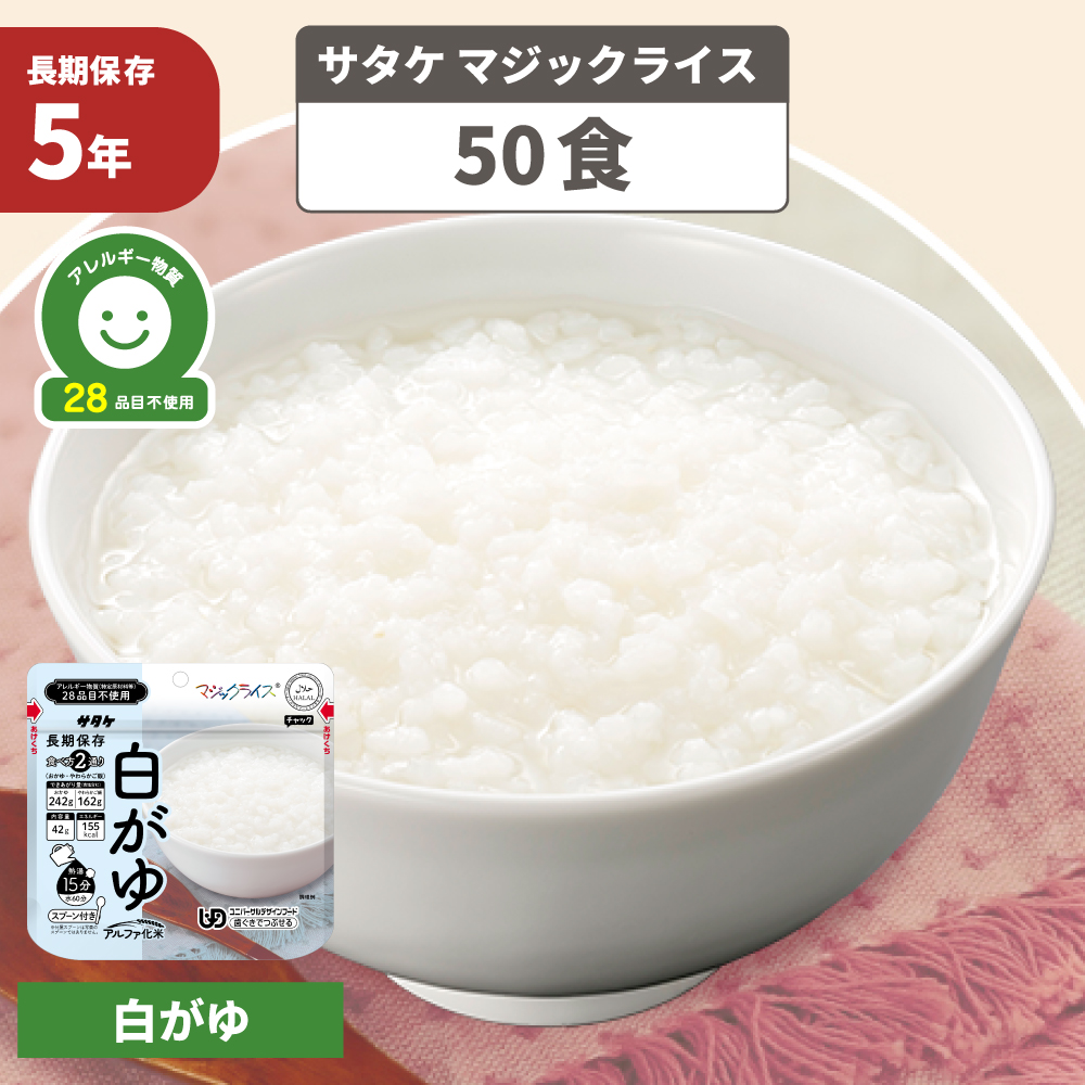 5. 非常食 マジックライス 白がゆ 50食 防災グッズ アレルギー対応 28品目不使用 ごはん アルファ化米 防災食 サタケ