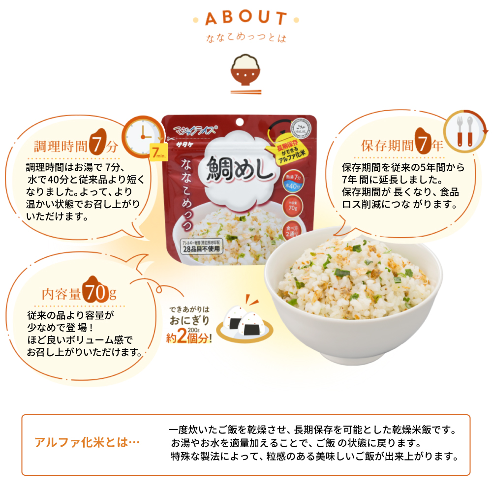 5. 非常食 マジックライス ななこめっつ 梅昆布ご飯 50食 アレルギー対応 7年保存 防災グッズ 防災食 28品目不使用 ごはん サタケ