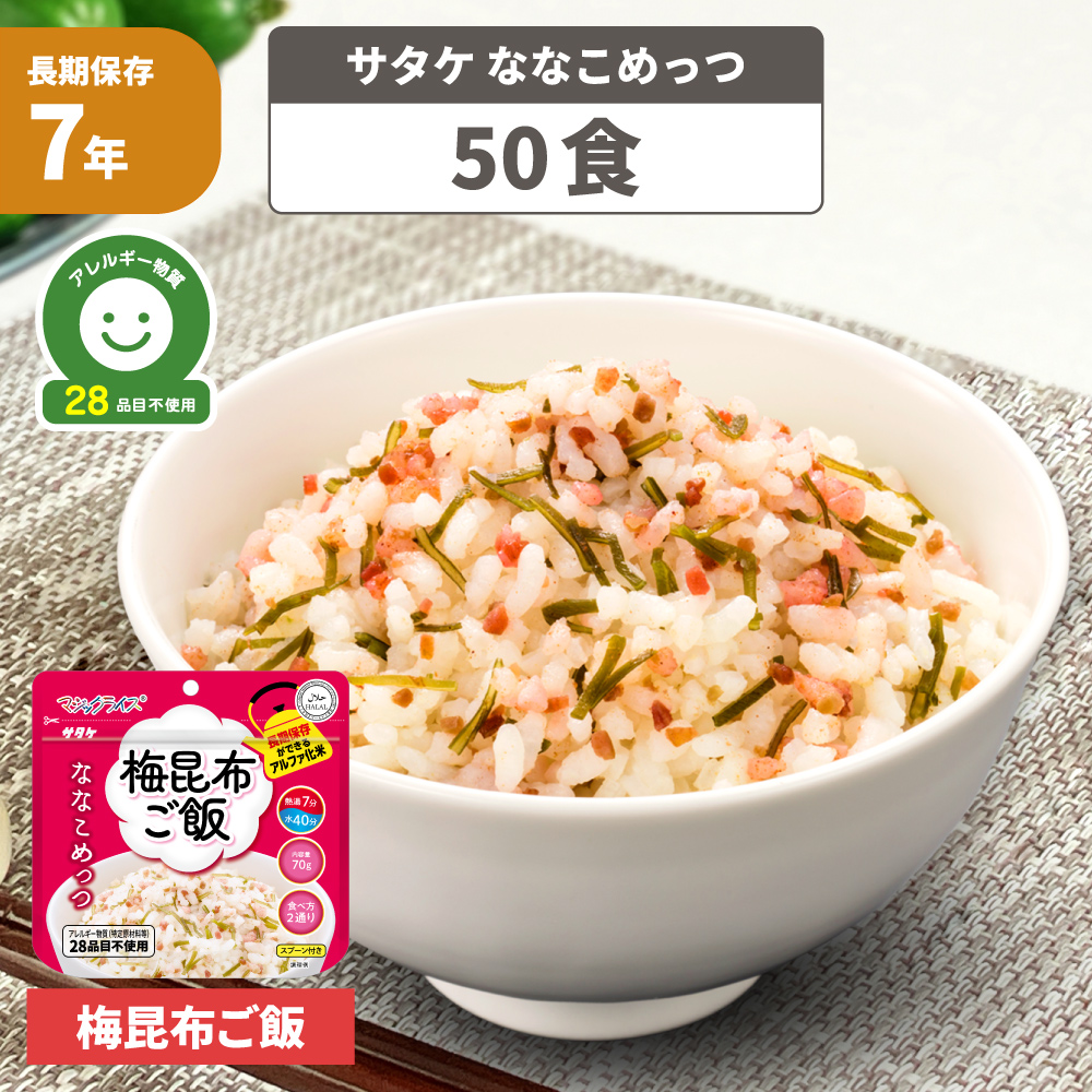 非常食 マジックライス ななこめっつ 梅昆布ご飯 50食 アレルギー対応 7年保存 防災グッズ 防災食 28品目不使用 ごはん サタケ