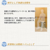 EV椅子は、既存のエレベーターに簡単に設置でき、万が一の時は非常用トイレとして、また非常用救援物資の収納庫としてご利用頂けます。