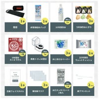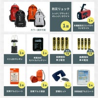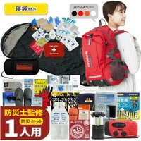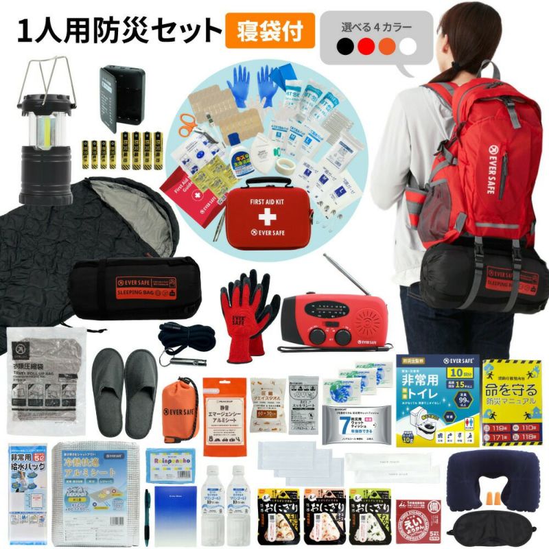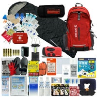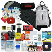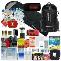 ファーストエイドケース (Lサイズ)×1 / 液晶体温計×1 / N95防護マスク×1 / キズ洗浄消毒×1 / 絆創膏 (Mサイズ)×12 / 絆創膏 (Lサイズ)×6 / キズあて防水パッド (S/M/L)×各1 / 滅菌ガーゼ (S/M/L)×各1 / アルコール消毒綿×4 / ハサミ×1 / ピンセット×1 /包帯 (2号/3号/4号)×各1 / 不織布三角巾×1 / 綿棒 (個包装)×10 / ニトリル手袋 (個装パッケージ入)×1 / ポリエチレン手袋 (密封個包装)×2 / 不織布テープ×1 / 安全ピン×4 / 熱可塑性エラストマー 止血帯 (ゴム) ×1 / 人工呼吸マウスピース×1 / ファーストエイドキットガイド×1