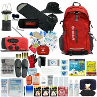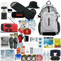 ファーストエイドケース (Lサイズ)×1 / 液晶体温計×1 / N95防護マスク×1 / キズ洗浄消毒×1 / 絆創膏 (Mサイズ)×12 / 絆創膏 (Lサイズ)×6 / キズあて防水パッド (S/M/L)×各1 / 滅菌ガーゼ (S/M/L)×各1 / アルコール消毒綿×4 / ハサミ×1 / ピンセット×1 /包帯 (2号/3号/4号)×各1 / 不織布三角巾×1 / 綿棒 (個包装)×10 / ニトリル手袋 (個装パッケージ入)×1 / ポリエチレン手袋 (密封個包装)×2 / 不織布テープ×1 / 安全ピン×4 / 熱可塑性エラストマー 止血帯 (ゴム) ×1 / 人工呼吸マウスピース×1 / ファーストエイドキットガイド×1