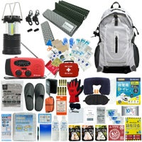 ファーストエイドケース (Lサイズ)×1 / 液晶体温計×1 / N95防護マスク×1 / キズ洗浄消毒×1 / 絆創膏 (Mサイズ)×12 / 絆創膏 (Lサイズ)×6 / キズあて防水パッド (S/M/L)×各1 / 滅菌ガーゼ (S/M/L)×各1 / アルコール消毒綿×4 / ハサミ×1 / ピンセット×1 /包帯 (2号/3号/4号)×各1 / 不織布三角巾×1 / 綿棒 (個包装)×10 / ニトリル手袋 (個装パッケージ入)×1 / ポリエチレン手袋 (密封個包装)×2 / 不織布テープ×1 / 安全ピン×4 / 熱可塑性エラストマー 止血帯 (ゴム) ×1 / 人工呼吸マウスピース×1 / ファーストエイドキットガイド×1