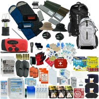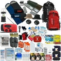 ファーストエイドケース (Lサイズ)×1 / 液晶体温計×1 / N95防護マスク×1 / キズ洗浄消毒×1 / 絆創膏 (Mサイズ)×12 / 絆創膏 (Lサイズ)×6 / キズあて防水パッド (S/M/L)×各1 / 滅菌ガーゼ (S/M/L)×各1 / アルコール消毒綿×4 / ハサミ×1 / ピンセット×1 /包帯 (2号/3号/4号)×各1 / 不織布三角巾×1 / 綿棒 (個包装)×10 / ニトリル手袋 (個装パッケージ入)×1 / ポリエチレン手袋 (密封個包装)×2 / 不織布テープ×1 / 安全ピン×4 / 熱可塑性エラストマー 止血帯 (ゴム) ×1 / 人工呼吸マウスピース×1 / ファーストエイドキットガイド×1