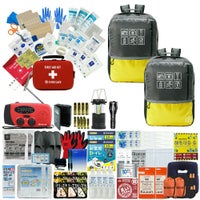 ファーストエイドケース (Lサイズ)×1 / 液晶体温計×1 / N95防護マスク×1 / キズ洗浄消毒×1 / 絆創膏 (Mサイズ)×12 / 絆創膏 (Lサイズ)×6 / キズあて防水パッド (S/M/L)×各1 / 滅菌ガーゼ (S/M/L)×各1 / アルコール消毒綿×4 / ハサミ×1 / ピンセット×1 /包帯 (2号/3号/4号)×各1 / 不織布三角巾×1 / 綿棒 (個包装)×10 / ニトリル手袋 (個装パッケージ入)×1 / ポリエチレン手袋 (密封個包装)×2 / 不織布テープ×1 / 安全ピン×4 / 熱可塑性エラストマー 止血帯 (ゴム) ×1 / 人工呼吸マウスピース×1 / ファーストエイドキットガイド×1