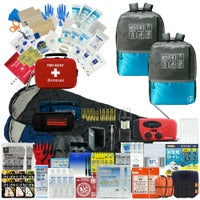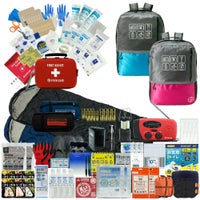 ファーストエイドケース (Lサイズ)×1 / 液晶体温計×1 / N95防護マスク×1 / キズ洗浄消毒×1 / 絆創膏 (Mサイズ)×12 / 絆創膏 (Lサイズ)×6 / キズあて防水パッド (S/M/L)×各1 / 滅菌ガーゼ (S/M/L)×各1 / アルコール消毒綿×4 / ハサミ×1 / ピンセット×1 /包帯 (2号/3号/4号)×各1 / 不織布三角巾×1 / 綿棒 (個包装)×10 / ニトリル手袋 (個装パッケージ入)×1 / ポリエチレン手袋 (密封個包装)×2 / 不織布テープ×1 / 安全ピン×4 / 熱可塑性エラストマー 止血帯 (ゴム) ×1 / 人工呼吸マウスピース×1 / ファーストエイドキットガイド×1