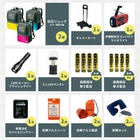 ファーストエイドケース (Lサイズ)×1 / 液晶体温計×1 / N95防護マスク×1 / キズ洗浄消毒×1 / 絆創膏 (Mサイズ)×12 / 絆創膏 (Lサイズ)×6 / キズあて防水パッド