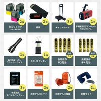 ファーストエイドケース (Lサイズ)×1 / 液晶体温計×1 / N95防護マスク×1 / キズ洗浄消毒×1 / 絆創膏 (Mサイズ)×12 / 絆創膏 (Lサイズ)×6 / キズあて防水パッド