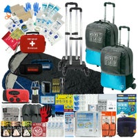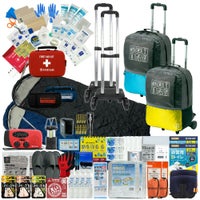(S/M/L)×各1 / 滅菌ガーゼ (S/M/L)×各1 / アルコール消毒綿×4 / ハサミ×1 / ピンセット×1 /包帯 (2号/3号/4号)×各1 / 不織布三角巾×1 / 綿棒 (個包装)×10 / ニトリル手袋
