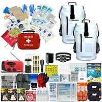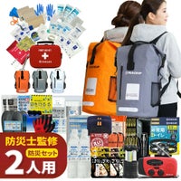 ファーストエイドケース (Lサイズ)×1 / 液晶体温計×1 / N95防護マスク×1 / キズ洗浄消毒×1 / 絆創膏 (Mサイズ)×12 / 絆創膏 (Lサイズ)×6 / キズあて防水パッド (S/M/L)×各1 / 滅菌ガーゼ (S/M/L)×各1 / アルコール消毒綿×4 / ハサミ×1 / ピンセット×1 /包帯 (2号/3号/4号)×各1 / 不織布三角巾×1 / 綿棒 (個包装)×10 / ニトリル手袋 (個装パッケージ入)×1 / ポリエチレン手袋 (密封個包装)×2 / 不織布テープ×1 / 安全ピン×4 / 熱可塑性エラストマー 止血帯 (ゴム) ×1 / 人工呼吸マウスピース×1 / ファーストエイドキットガイド×1