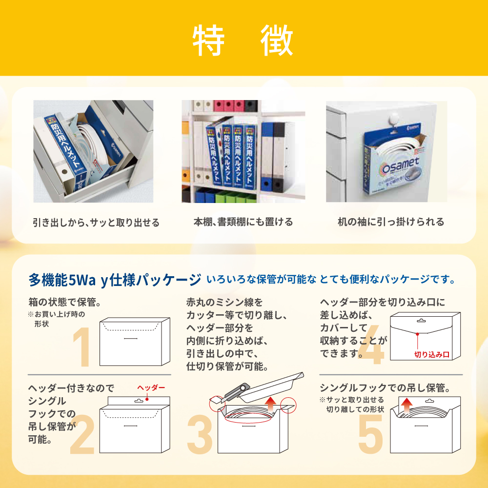 5. 防災ヘルメット オサメットエッグ 4個 オサメット A4サイズ 防災用ヘルメット 国家検定品合格品 日本製 飛来・落下物 KAGAヘルメット 折りたたみヘルメット KGO-TMG-01 加賀産業