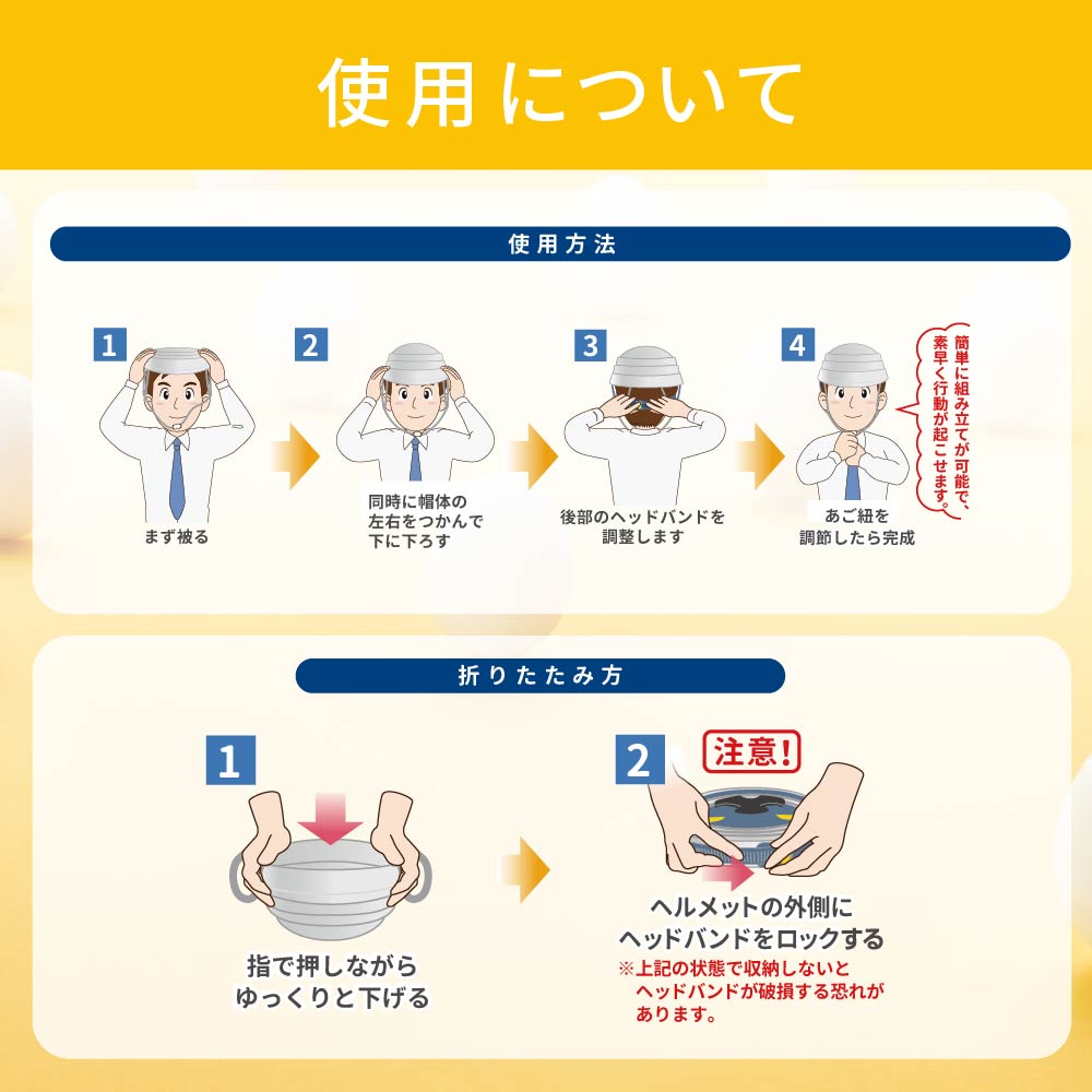 折り畳み ヘルメット あご紐 つば付き 防災グッズ 頭囲55~64cm 男女兼用 大人 防災 軽量 コンパクト収納 避難 災害 地震 備蓄 防災用品 災害グッズ たまごの殻 加賀ヘルメット Kaga Helmet