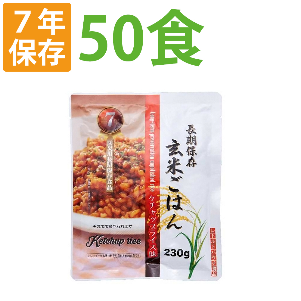厳選原材料使用! 7年保存 レトルト「玄米ごはん ケチャップライス 50食セット/箱」アレルギー対応