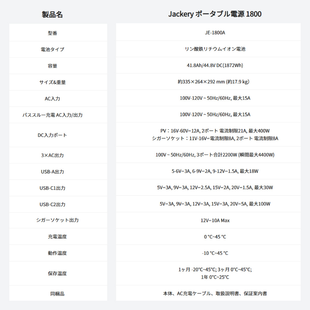ポータブル電源 1800 ポタ電 ポータブルバッテリー 1872Wh 蓄電池 長寿命バッテリー 防災グッズ 非常用電源 アウトドア JE-1800A Jackery