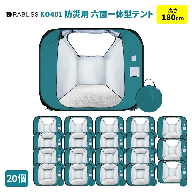 防災グッズ 防災用 六面一体型テント 20個 テント 防水 防塵 一体型 コンパクト 車椅子 伝言プレート 施錠可能 ワンタッチ KO401 RABLISS