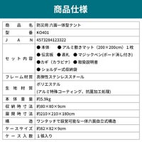 4. 防災グッズ 防災用 六面一体型テント 20個 テント 防水 防塵 一体型 コンパクト 車椅子 伝言プレート 施錠可能 ワンタッチ KO401 RABLISS