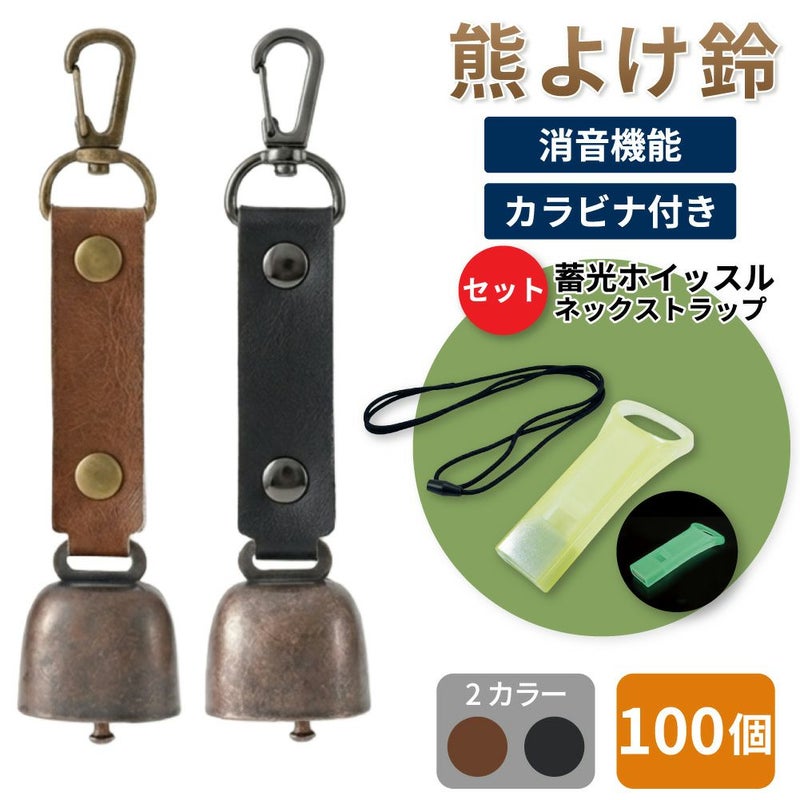 熊鈴 熊よけ鈴 100個 蓄光 エマージェンシーホイッスル 安全ネックストラップ 3点セット ブラウン ブラック 熊対策グッズ 消音機能 マグネット ホイッスル ストラップ まとめ買い EVERSAFE