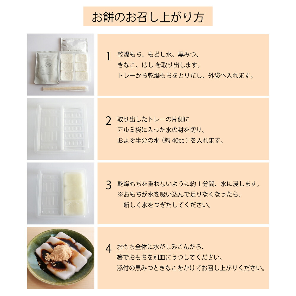 アルファ米の『アルファ』とは、お米に含まれる「デンプンの状態」を示しています。お米は70~80%がデンプンでできています。生デンプン(生米)は、そのまま食べてもまずく、消化しにくいため栄養になりにくいのですが、水を含ませ熱を加えると、美味しくて、しかも消化しやすいデンプンに変わります。アルファ化したご飯は水分を除く(乾燥)と、生デンプンへ戻らず「アルファ化デンプン」の状態を保ち続けます。そして、このアルファ米にお湯や水を加えると、煮炊きせずとも、軟らかく美味しいご飯ができ上る、という訳です。