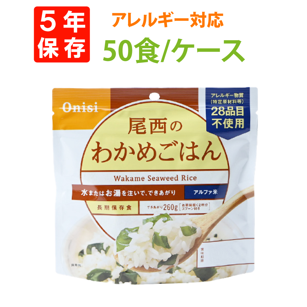 5. 尾西食品「わかめごはん 50食セット」5年保存食