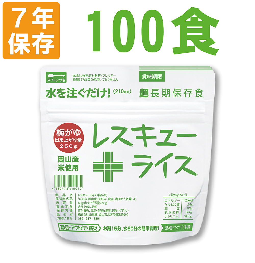3. 7年保存 レスキューライス「梅がゆ 100食セット/箱」