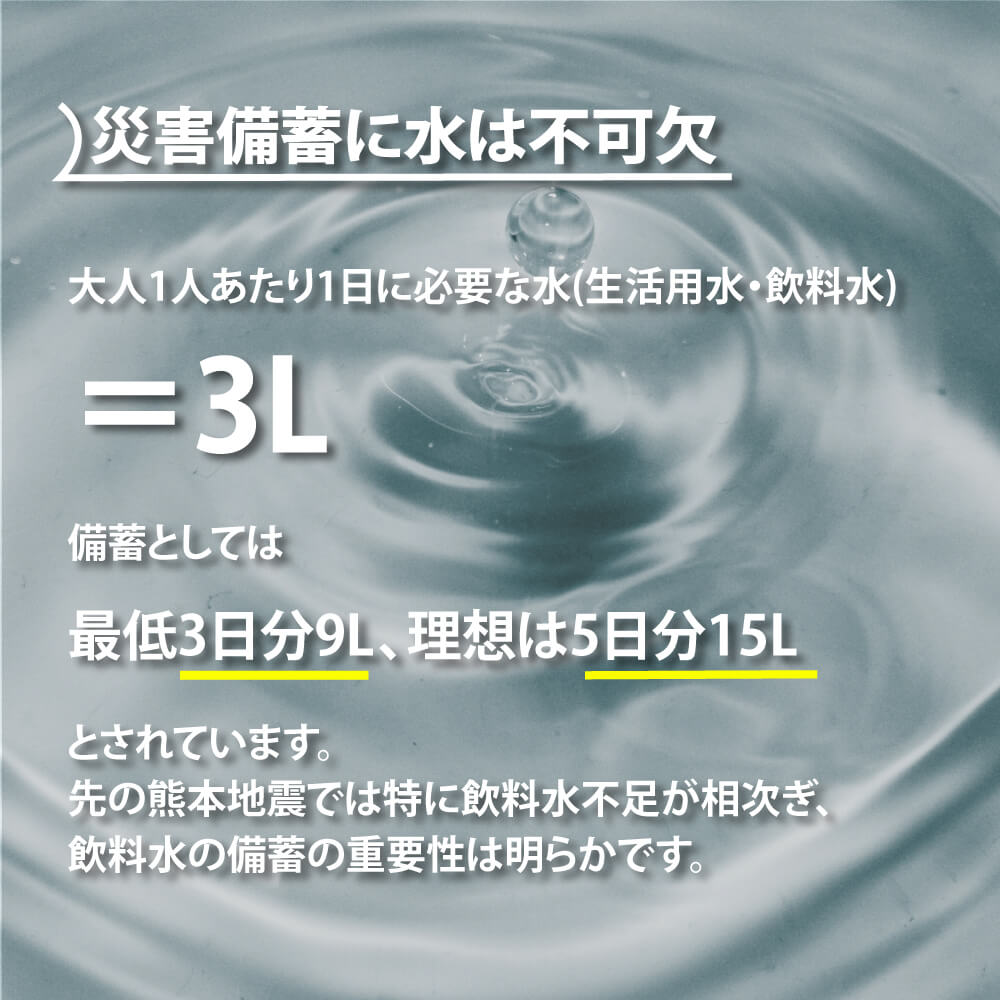 成人で1日3L、3日間で9Lが最低限の目安です。
