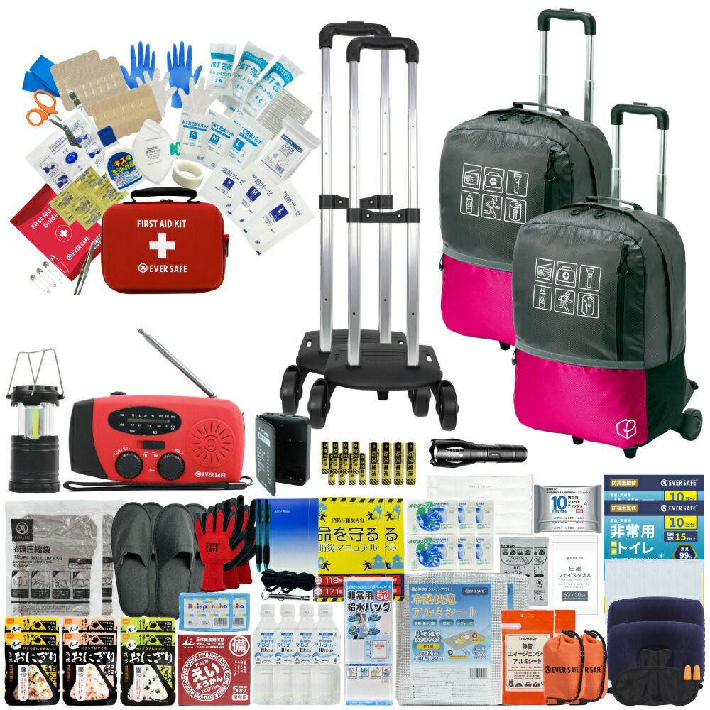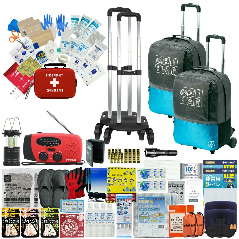 他の画像を見る 停電、断水、避難所生活などあらゆる場面を想定した万能タイプの防災セットに加え、ファーストエイドキットも付いたワンランク上の防災セット 防災グッズ 防災セット 2人用 40L ビッグリュック キャリーカート付き 防災士監修 ファーストエイドキット 避難グッズ 地震対策 トイレ 非常食 ランタン ラジオ 長期保存水 充電器 防災 警戒レベル5 EVERSAFE L5BRCR02 公式サイト販売価格 ¥ 31,254 税込 詳細を見る お気に入りに登録する