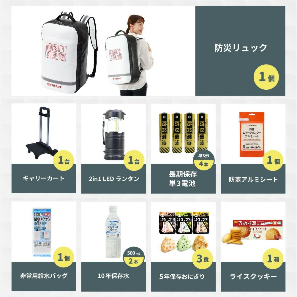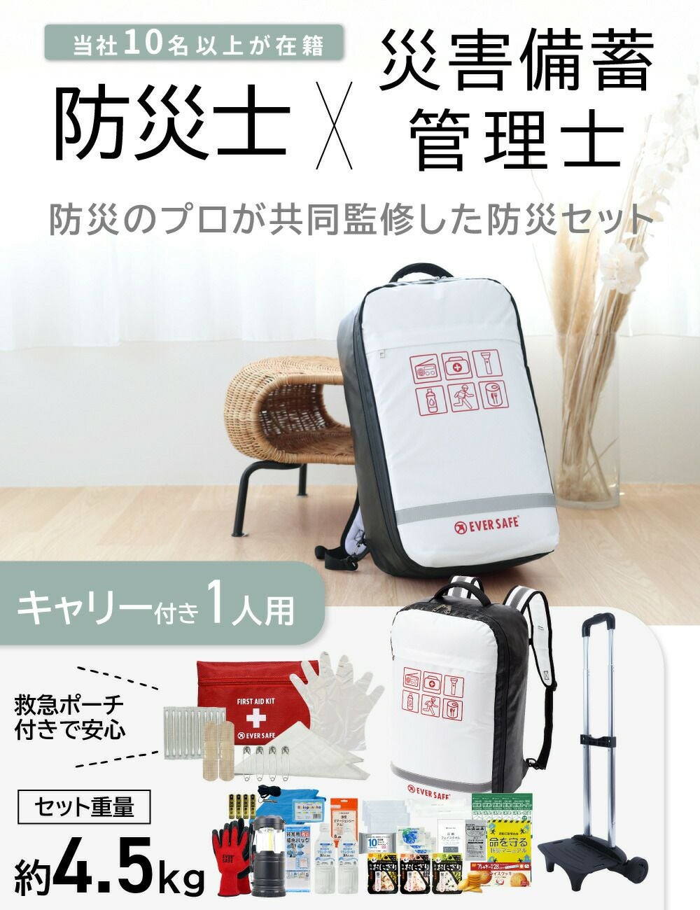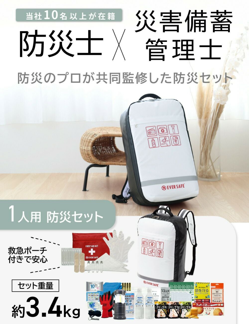 他の画像を見る 災害時の不安を軽減 女性に必要なアイテムが備わったポーチをプラス 安心の防災セット 防災士監修 女性のための防災セット 1人用 EVERSAFEリュック エマージェンシー レディース 女性用 ランタン 非常食 保存水 簡易トイレ 救急セット 衛生用品 警戒レベル3 EVERSAFE L3ESLA01 公式サイト特別価格 ¥ 11,305 税込 詳細を見る お気に入りに登録する