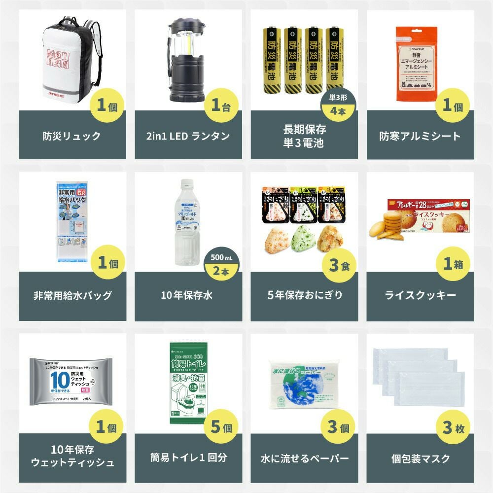 他の画像を見る 必要な中身が揃ったおすすめの防災セット 手持ちのリュックに詰めるだけ 防災士監修 防災セット 中身だけ 3人用 非常用持ち出し袋 防災ラジオ 非常食 保存水 モバイルバッテリー 簡易トイレ 救急セット 衛生用品 避難 家族 おすすめ 中身 女性 男性 三人用 警戒レベル4 L4NK03 公式サイト特別価格 ¥ 23,655 税込 詳細を見る お気に入りに登録する
